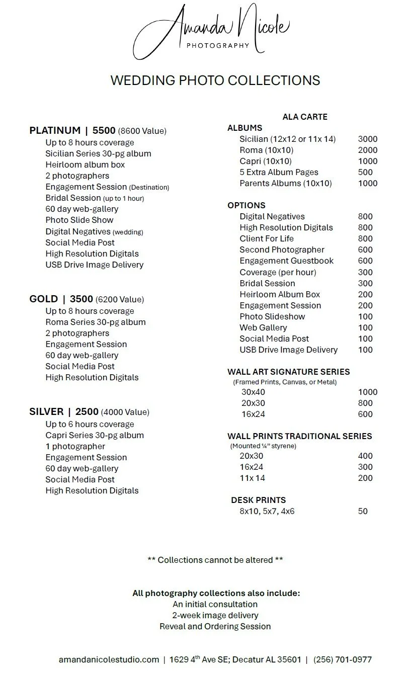 1629 4th Ave SE ; Decatur AL 35601 | (256) 701-0977 | amandanicolephotographer@gmail.com
